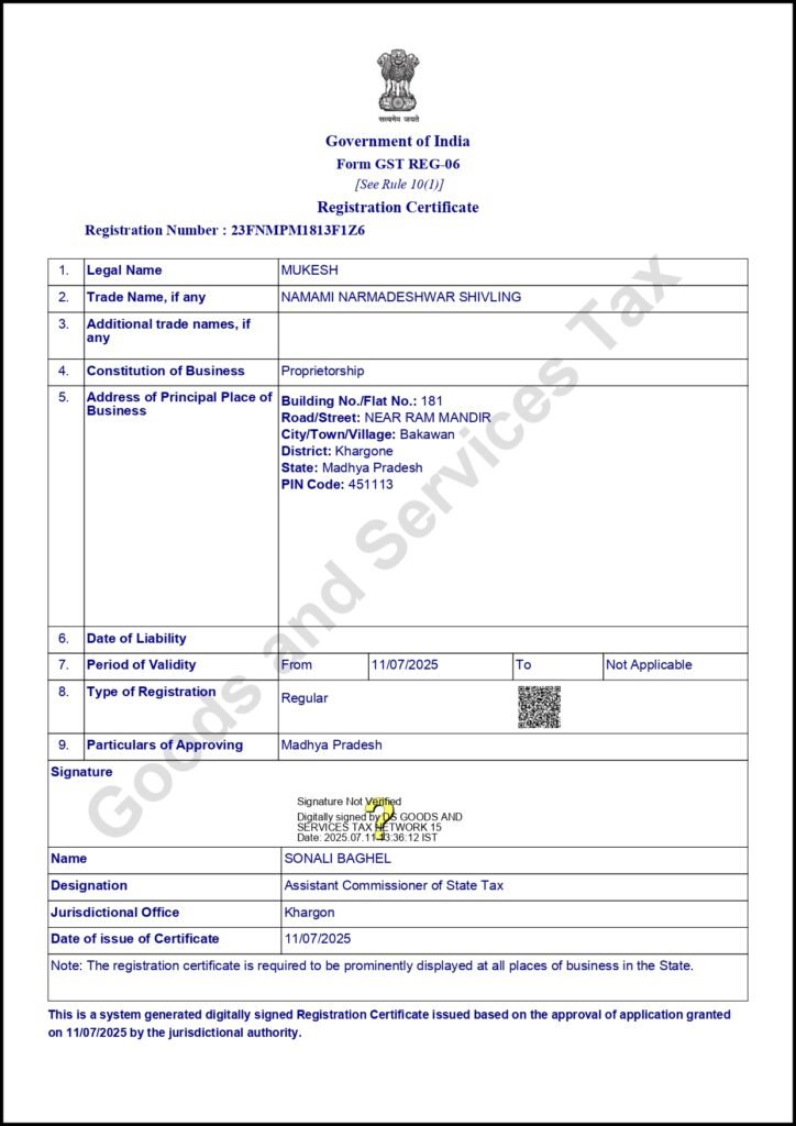 I am Mukesh, the sole proprietor of Namami Narmadeshwar Shivling, based in Bakawan, Madhya Pradesh (the origin of sacred Narmada stones). We are a small, family-run business that sources and hand-polishes natural stones from the Narmada River for traditional worship. We are a legally registered entity with GSTIN 23FNMPM1813F1Z6. Our business model is 100% transparent: customers select their unique stone via Live Video Call, and we offer Cash on Delivery (COD) to ensure customer trust and security